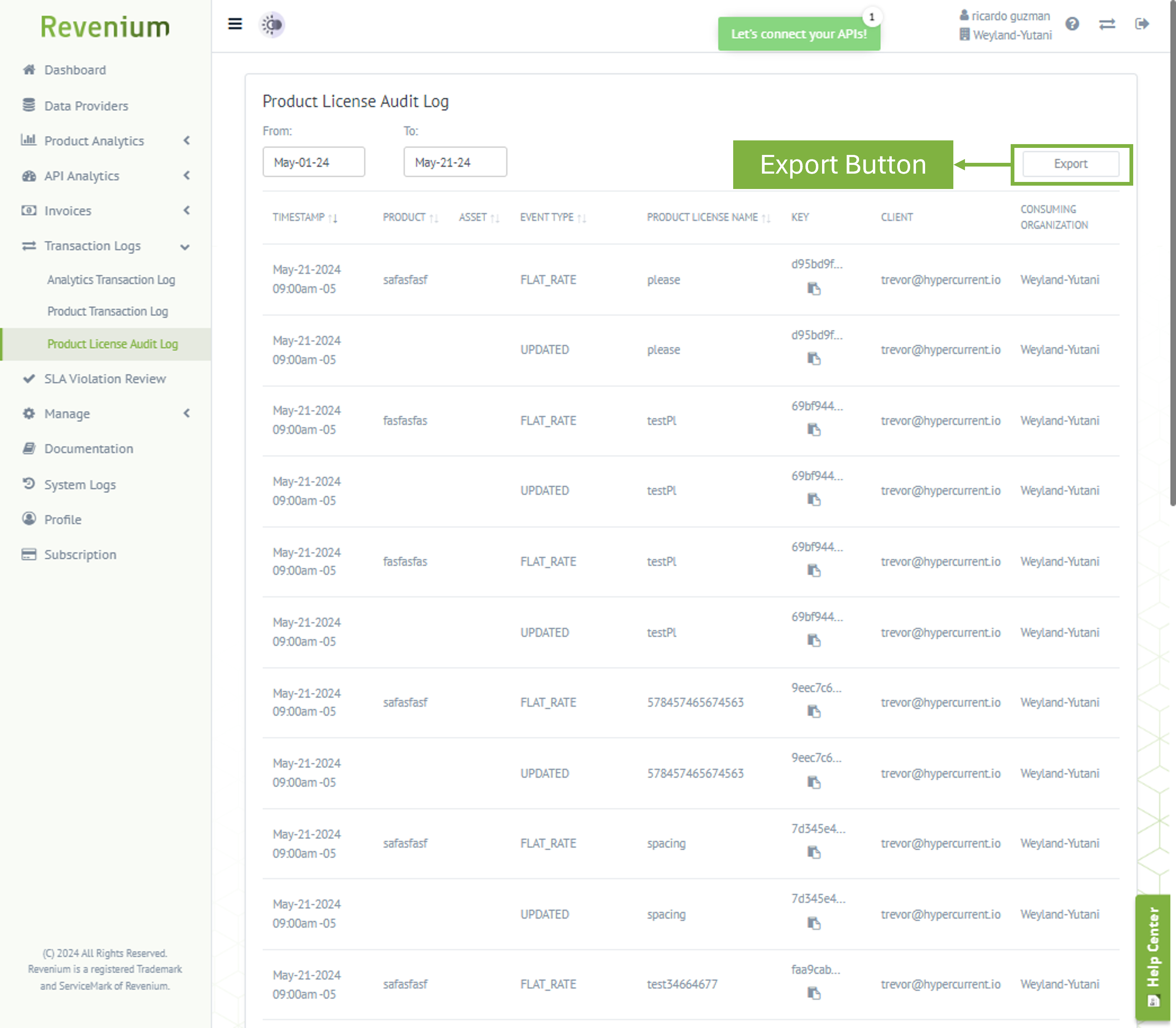 Export Product License Audit Log