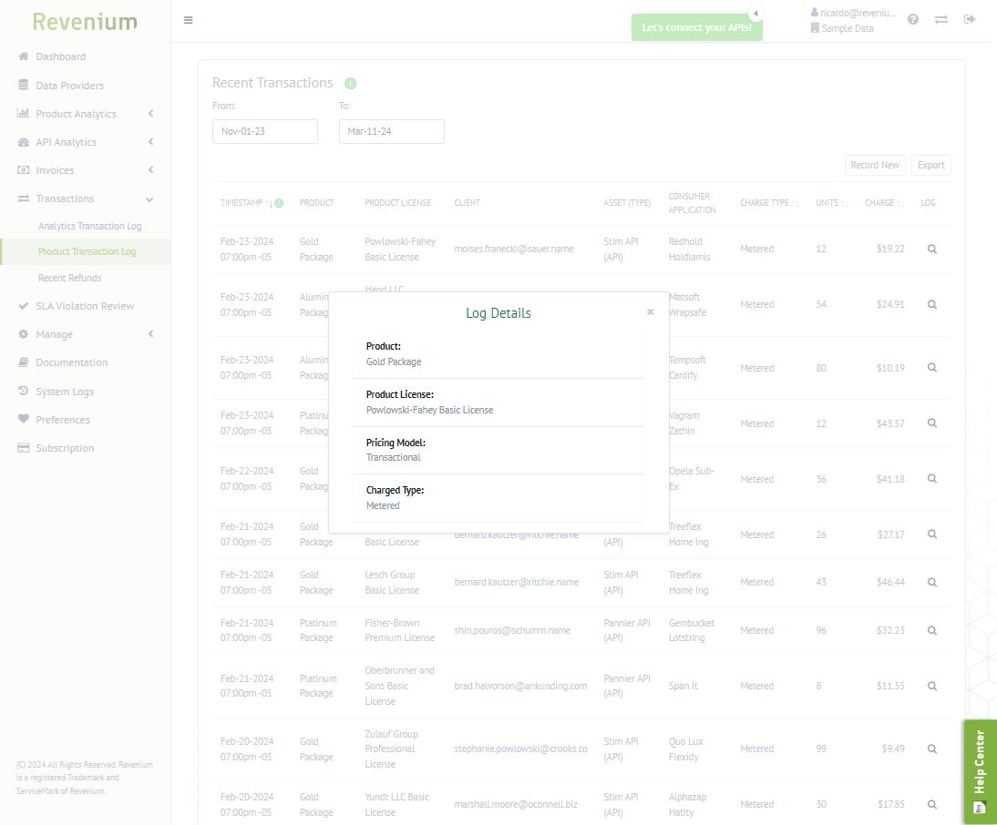 In some cases (i.e. testing different metering/rating scenarios), you may need to [record a no-code transaction manually](https://docs.revenium.io/ai-and-api-monetization/settings/transactions/no-code-transaction-testing). This can be done using the 'record new' transaction button on this page.